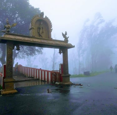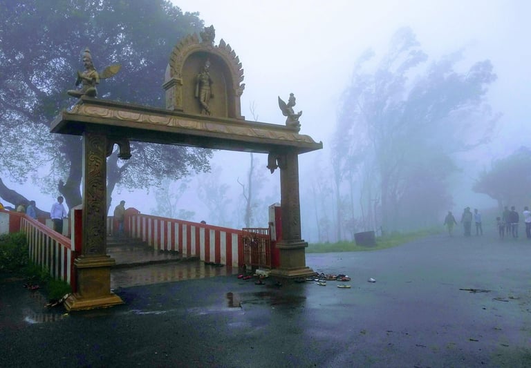A beautiful hilltop temple inside Bandipur National Park, famous for misty weather, cool climate, and stunning views.